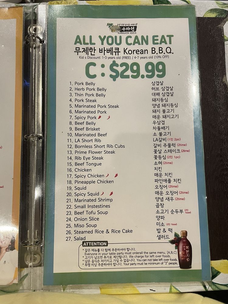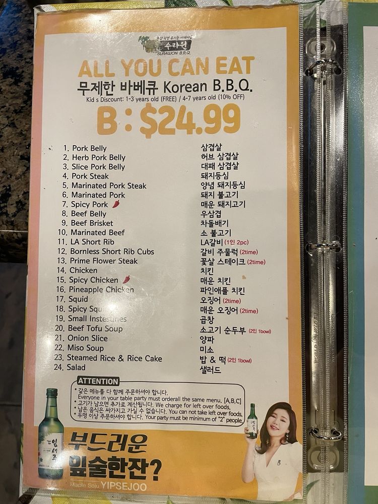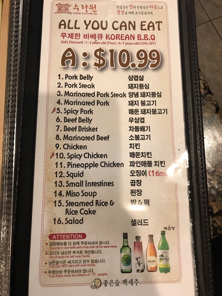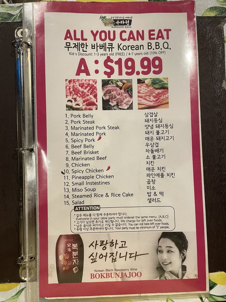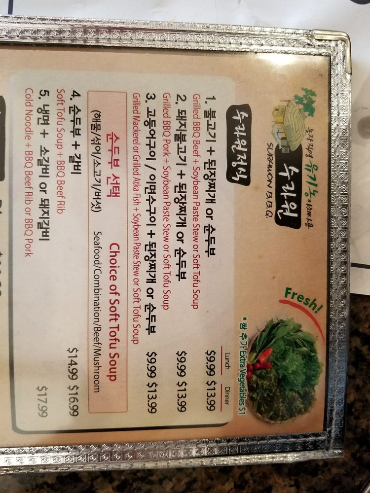 Welcome to Surawon BBQ, a Korean barbeque haven located in Cerritos, CA. This restaurant offers a wide range of amenities such as reservations, delivery, takeout, and even catering services. With options for vegetarians and various payment methods including cryptocurrency, Surawon BBQ ensures convenience and inclusivity for all. The menu features enticing options like the Two Meat with Side for $14.99 and the Three Meat with Side for $19.99. Customers rave about the fresh sides and meats, with reviews praising the welcoming staff and excellent service. Surawon BBQ truly stands out for its quality dishes, friendly atmosphere, and exceptional value. Come dine at Surawon BBQ and experience the best of Korean barbeque in town.